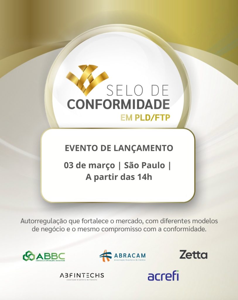 A ABRACAM – Associação Brasileira de Câmbio, em conjunto com seus parceiros ABBC, ABFintechs, ABRANET, Acrefi e Zetta, realizará o evento de lançamento do Selo de Conformidade em PLD/FTP, uma iniciativa de autorregulação voltada ao fortalecimento da governança, da integridade e da conformidade no Sistema Financeiro Nacional e no Sistema de Pagamentos Brasileiro.